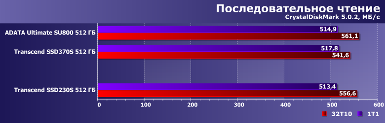 | AData Ultimate SU800 512 ГБ | Transcend SSD370S 512 ГБ | Transcend SSD230S 512 ГБ |