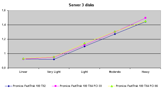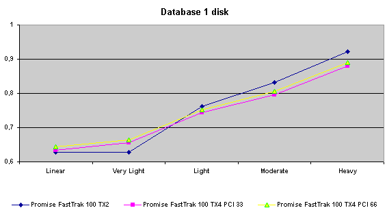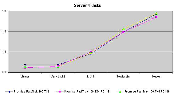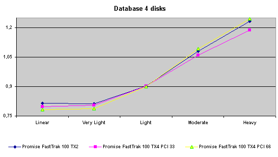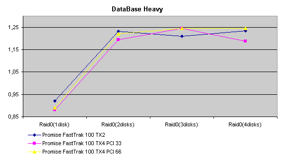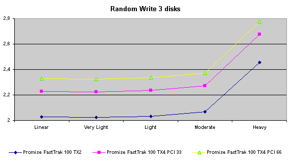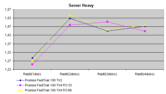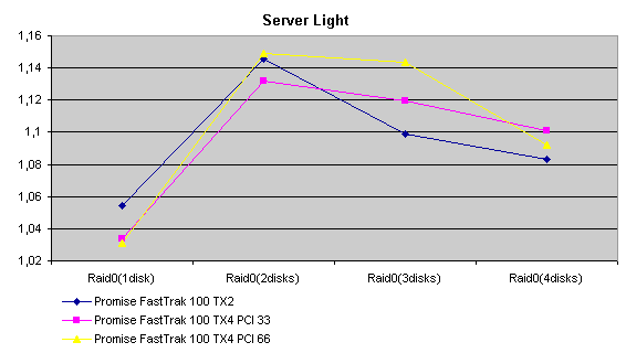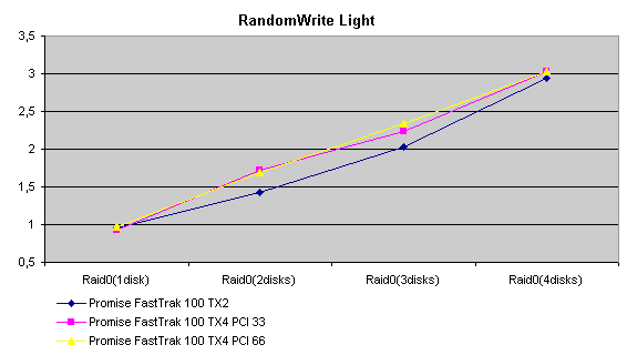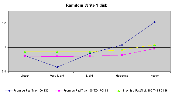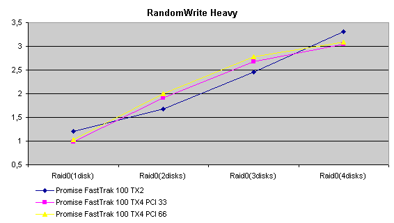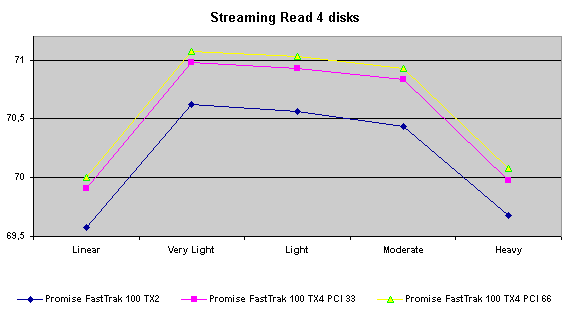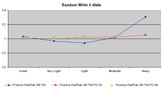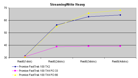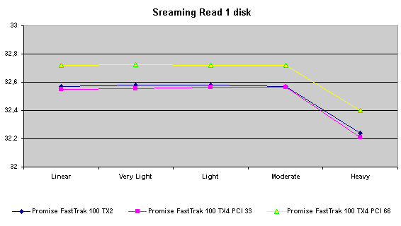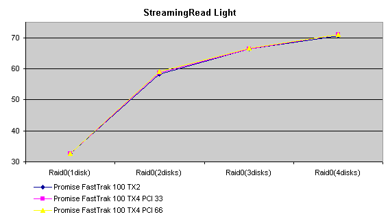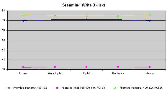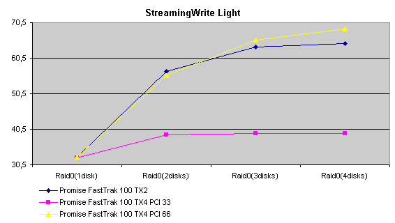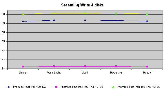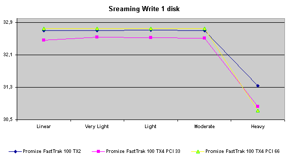 В общем-то, стала понятна тенденция — FastTrak100 TX4 показывает крайне низкие результаты в последовательной записи при работе на стандартной 33-мегагерцовой шине PCI.