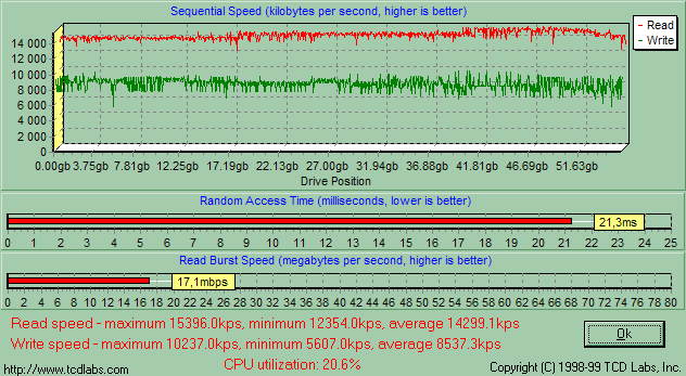 С чем еще сравнить тестируемые накопители? Полезным было бы с ZIV2, однако на своем компьютере я его не тестировал, так что напрямую сравнивать результаты нельзя. Зато недавно тестировал я два фотовинчестера, причем один из них (X’s-Drive VP2060) вообще с этим же винчестером, да и во второй модели стояло нечто на 60 Гбайт. Так что на диаграммах будут четыре накопителя, ну а после них мы еще и неформально сравним оба устройства с ZIV2.