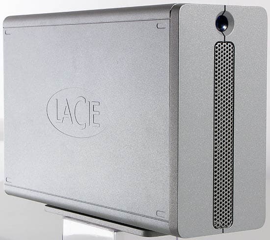 Как я уже сказал выше, одиночных винчестеров такого объема пока никто не производит, так что для получения подобного накопителя требуется массив дисков. Разумеется, это непосредственным образом сказывается на его размерах и массе: 268×173×88 мм и целых 5 кг живого веса. Как портативный накопитель его уже особо не используешь, хотя когда есть необходимость перевезти с места на место несколько сотен гигабайт информации, то альтернатив все равно особо нет. Впрочем, все диски LaCie, начиная с серии d2, ориентированы в первую очередь на стационарное использование, а тут размеры помехой не станут — в горизонтальном положении накопитель вполне входит в 19″ стойку (высота как раз на это рассчитана — чистых 2U). На столе, впрочем, его лучше поставить вертикально — технология та же, что и в случае d2. А вот в стойке несколько Bigger Disk Extreme хорошо устроятся рядом друг с другом.
