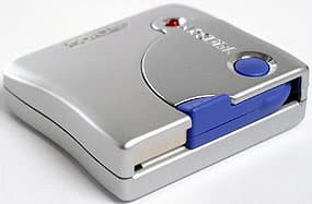 В последнее время компанию Archos обуяла страсть к миниатюризации: недавно мы знакомились с самым компактным MP3-плеером с объемом памяти 20 Гбайт, теперь же вашему вниманию предлагается самый компактный накопитель на базе микровинчестера. Его размеры (в походном состоянии) составляют всего 47,5×43,5×14 мм при массе 40 грамм. Сравнительно с флэш-накопителями это не так уж и мало, но так кажется лишь потому, что последние стали чрезвычайно компактными. Я прекрасно помню пятидюймовые винчестеры емкостью 20 Мбайт и пятидюймовые же дискеты на 360 Кбайт, а тут в такой крохе целых 4 гигабайта!