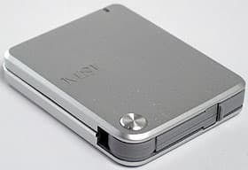 Внешне накопитель напоминает оба вышеописанных, но имеет большие габариты — 57,5×69,7×13,1 мм при массе 56,5 грамм. Так же, как и в их случае, при транспортировке USB-коннектор помещается внутрь корпуса, но есть и одно отличие — для работы его можно повернуть не только на 90 градусов, но и на 180 (по информации на сайте такая конструкция запатентована MSI). Для чего это сделано тоже понятно — как и в случае с BTC Zeus, производитель постарался дать пользователю больше свободы в плане расположения корпуса винчестера относительно порта, к которому тот подключается. Чья реализация (BTC или MSI) будет более удобной, зависит от того, к чему вы подключаете накопитель: расположение портов на разных компьютерах разное. Еще одной отличительной особенностью Mega Cache является наличие ползунка блокировки записи, который часто присутствует на флэшках, но редко встречается в случае винчестеров.