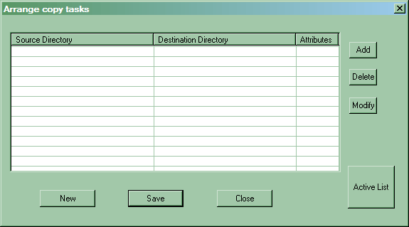 Нажимаем кнопку «Task» и видим табличку с заданиями, по-умолчанию пустую. При помощи расположенных справа кнопок можно создавать и модифицировать задания, нижние же позволяют все очистить и начать составление нового «набора» задач, сохранить текущий либо просто закончить с настройками.