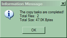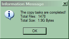 По окончании процесса получаем информационное окошко, сообщающее о том, сколько файлов и какого объема скопировано.