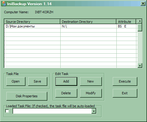 Для реализации копирования информации используется достаточно простая утилита IniBackup, имеющаяся на прилагаемом компакт-диске. Основное окно программы сильно напоминает все, виденное нами ранее. Создаем одно или несколько заданий (при необходимости, их параметры позднее можно будет изменить), после чего любоваться на него будет не за чем. Конечно, только если захочется запустить вручную какое-либо из заданий, хотя кнопкой удобнее :)