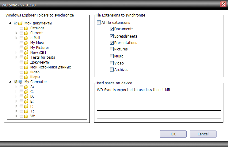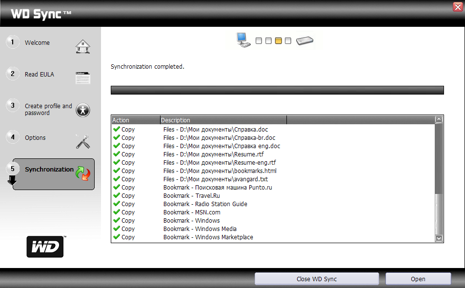 Далее, мы просто выполняем синхронизацию, и все — нужные файлы копируются с компьютера на My Passport. В последующем программа использует чуть более умный режим — копирует лишь измененные файлы.