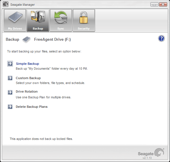 Старая портативная модель, равно как и стационарные, кроме ПО от самой Seagate, комплектовалась и продукцией третьих фирм, только вместо AutoBackup от Memeo это была Ceedo. В «новой коллекции», к сожалению, от этой практики отказались, причем как по отношению к стационарным накопителям, так и мобильного винчестера это касается. Теперь все накопители Seagate снабжаются одной и той же программой — Seagate Manager, ранее нами подробно изученной. Только ее возможности немного отличаются для разных накопителей.