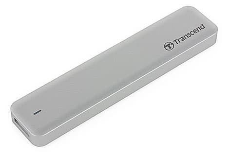 А вот это сегодняшний фаворит, впервые протестированный как раз в прошлой статье. Transcend JetDrive 500 официально предназначен не для внешнего использования, а для апгрейда Apple MacBook Air, выпущенных в 2010-2011 гг., однако благодаря комплектному алюминиевому внешнему контейнеру размерами всего 130×28×10 мм может быть легко превращен в компактный и легкий внешний SSD. При этом он получается более компактным, чем многие специальные модели внешних SSD — его габариты сравнимы даже с «обычными» USB-флэшками. Цена, конечно, выше. Однако многие готовы заплатить за скорость — разумеется, когда она им нужна, и ту, которая нужна.