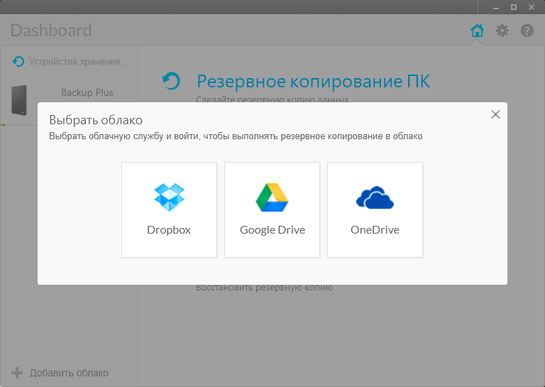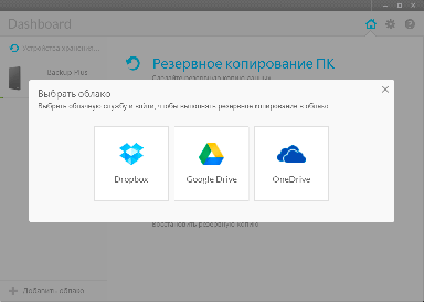 Так же хотелось бы отметить хорошую интеграцию с облачными хранилищами — Dashboard умеет работать не только с DropBox, поддерживаемым и WD Backup, но и с куда более «щедрыми» на дисковое пространство даже в бесплатном режиме Google Drive и OneDrive. Впрочем, сравнительно с емкостью ВЖД, и это немного, да и, как мы не раз уже писали, само по себе использование облаков подразумевает автоматическое резервирование данных более, чем в одном месте (как минимум — в облаке, а как максимум — на всех компьютерах, с ним синхронизируемых), так что считать эти способности ПО такими уж важными, мы не склонны.