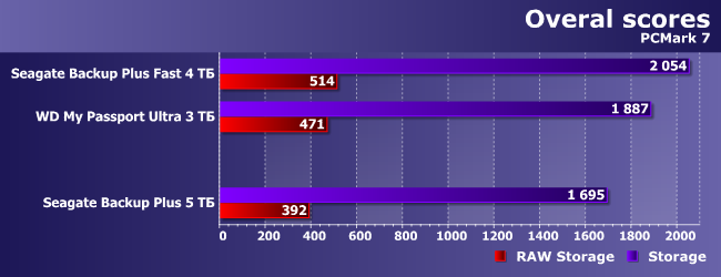 Однозначным лидером является Backup Plus Fast — да он им, скорее всего, навсегда и останется, поскольку слишком уж много у такой конструкции побочных эффектов, но вот последовательные операции она однозначно «подстегивает». А одиночные винчестеры одного класса и времени выпуска давно уже примерно равны. «Пятерка» не ставит никаких рекордов, но и антирекордов тоже. Просто нормальный компактный (относительно) винчестер с USB-интерфейсом. Главное, что очень емкий :)