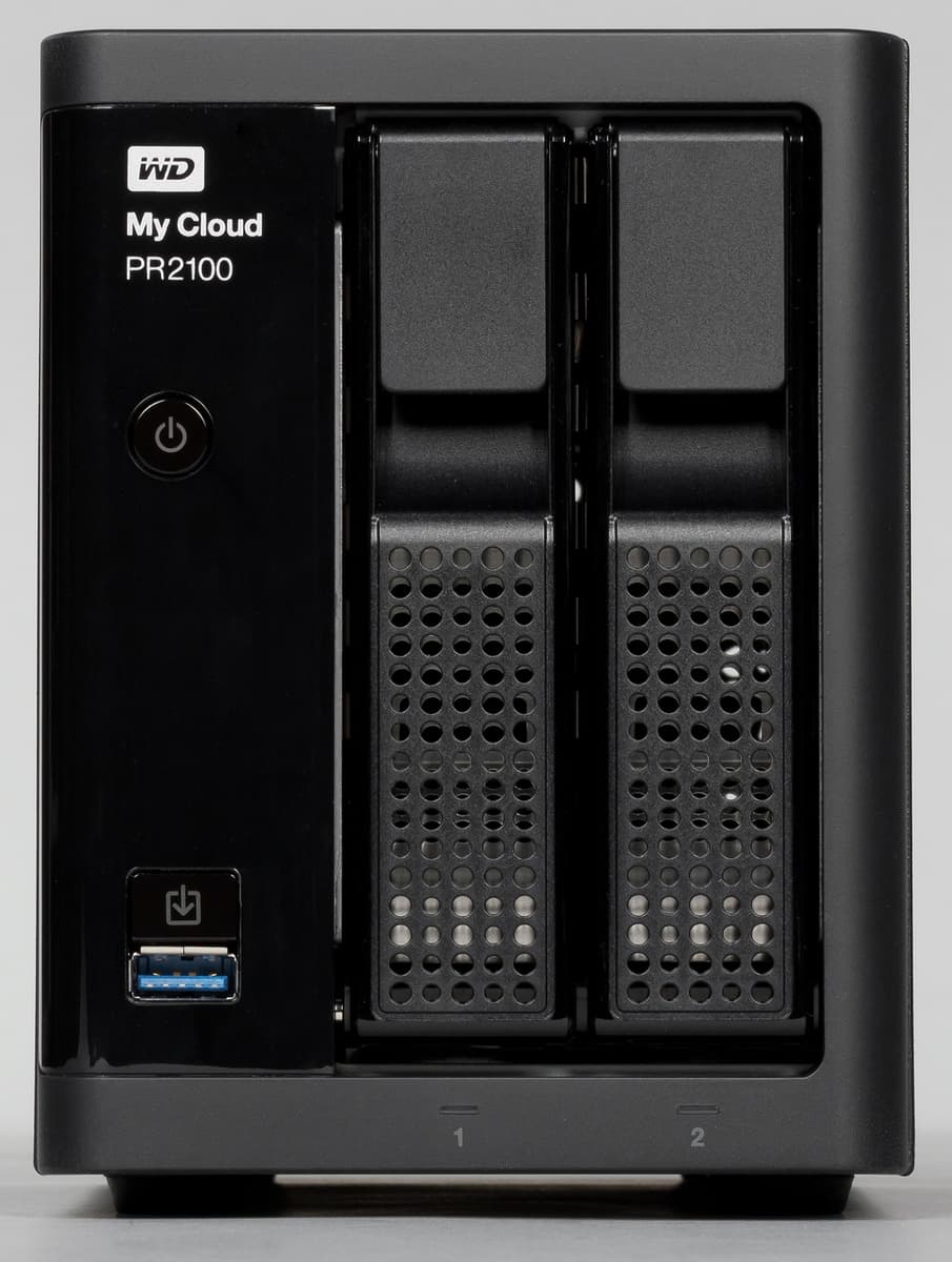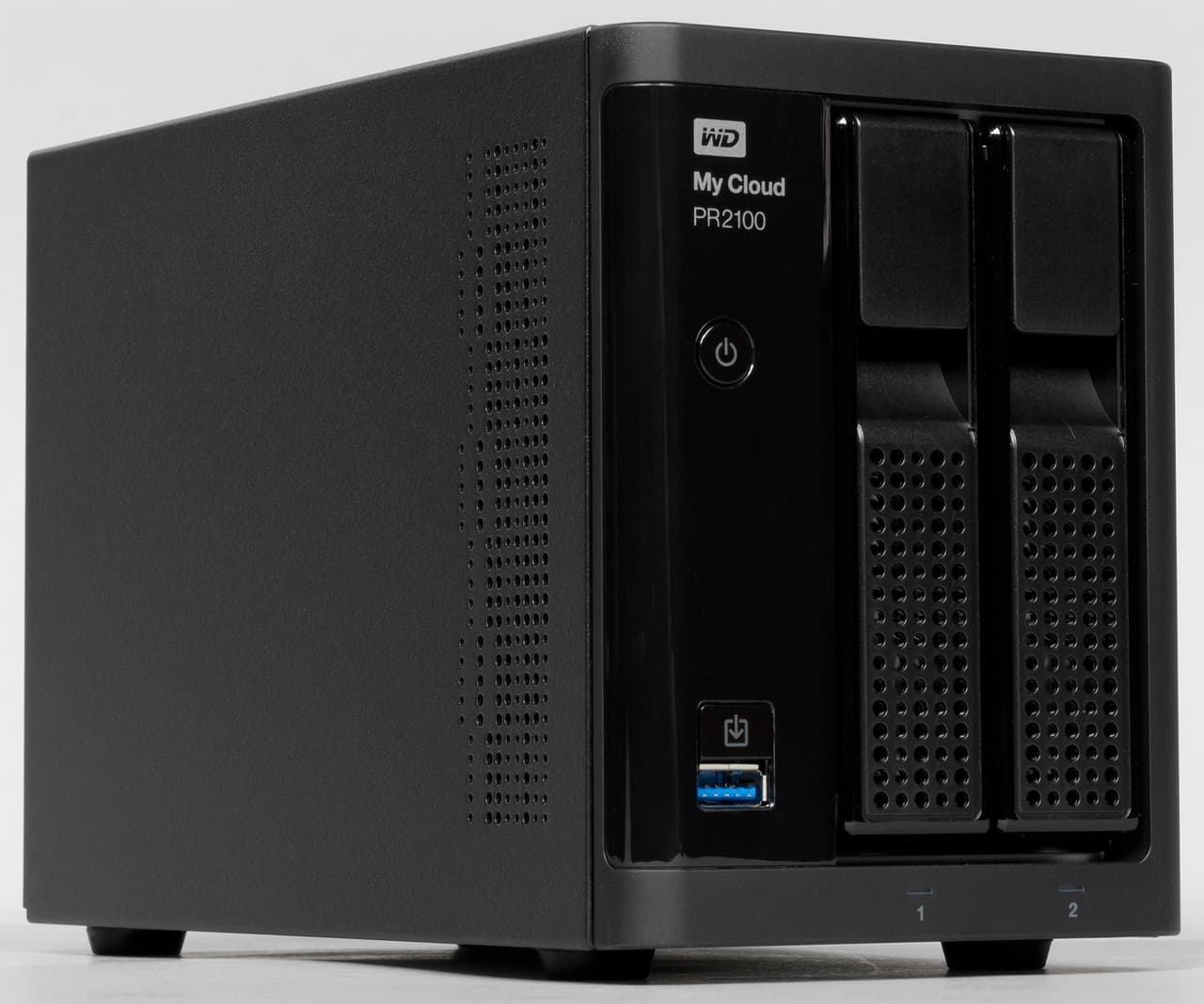 Сетевой накопитель WD My Cloud PR2100 представляет собой компактное устройство с практичным и тихим корпусом, рассчитанное на работу с двумя жесткими дисками. Решение получило современную платформу на базе SoC компании Intel с большим объемом оперативной памяти, что позволило данной модели показать высокую максимальную скорость работы в основном сценарии сетевого доступа к данным. Наличие портов USB 3.0 пригодится для расширения объема и резервного копирования. Модель позиционируется для профессионального использования, так что наличие двух сетевых портов и двух входов для блоков питания позволяет говорить о дополнительном уровне отказоустойчивости.
