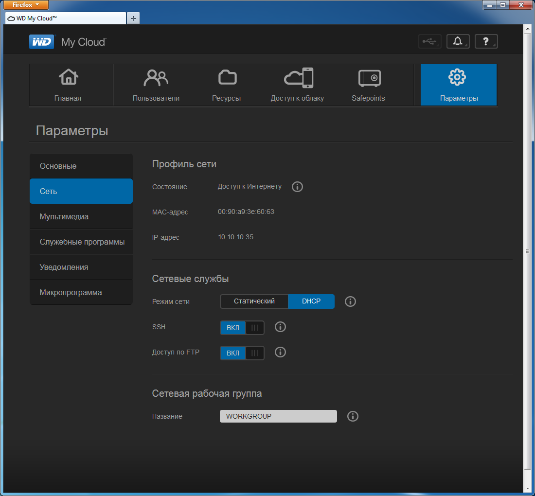 В случае, если роутер имеет внешний адрес и поддерживает UPnP для трансляции портов, скорость удаленной работы с накопителем определяется только возможностями Интернет-канала пользователя. Если же эти условия не выполняются, то устройство работает через сервера компании и скорость существенно ниже. В тестах мы видели цифры до нескольких мегабит в секунду. Так что если вы планируете интенсивно использовать устройство в удаленном режиме, рекомендуем постараться реализовать первый вариант. Статус подключения можно уточнить через Web-интерфейс.