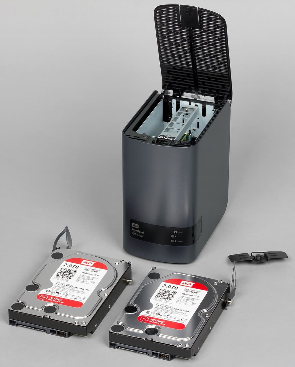 В начале этого года компания Western Digital Corporation обновила линейку своих сетевых накопителей двухдисковой моделью WD My Cloud EX2 Ultra. Новое устройство получило двухядерный процессор и 1 ГБ оперативной памяти. При этом модель сохранила компактные размеры и тихую систему охлаждения. Предусмотрены варианты поставки как без винчестеров, так и с комплектацией жесткими дисками серии WD Red объемом до 8 ТБ включительно (16 ТБ на устройство).