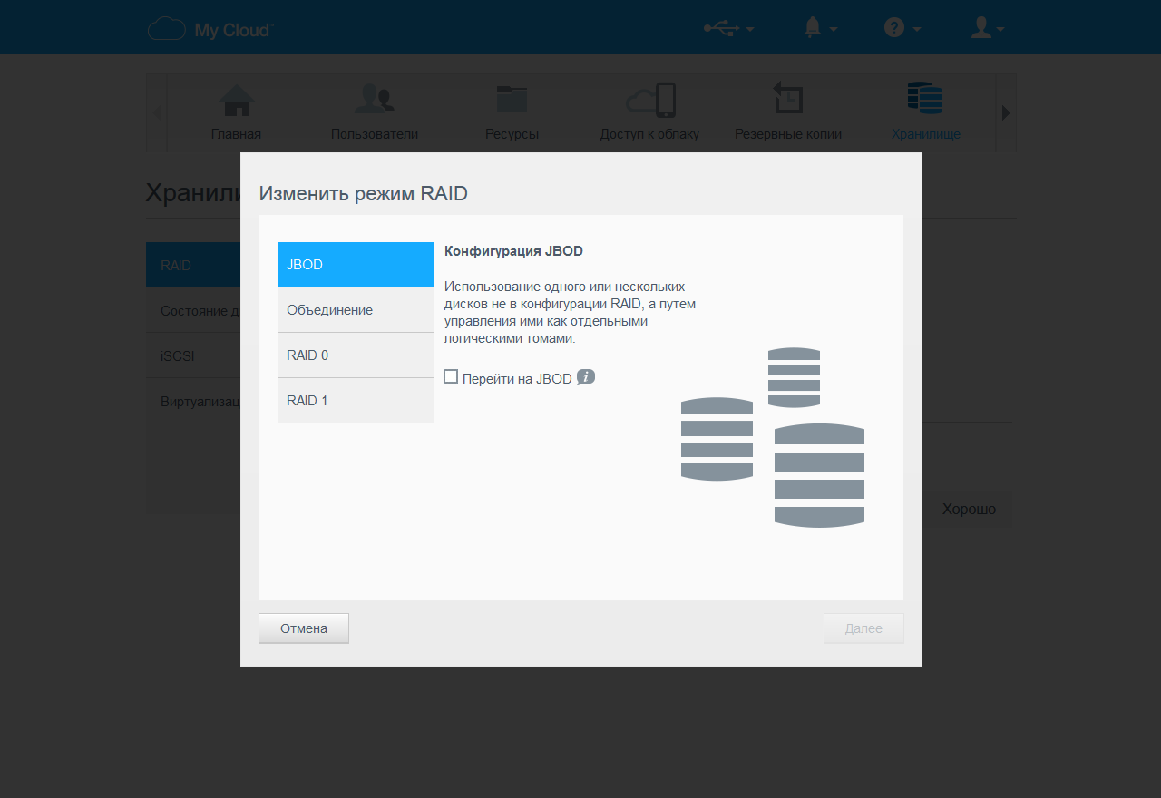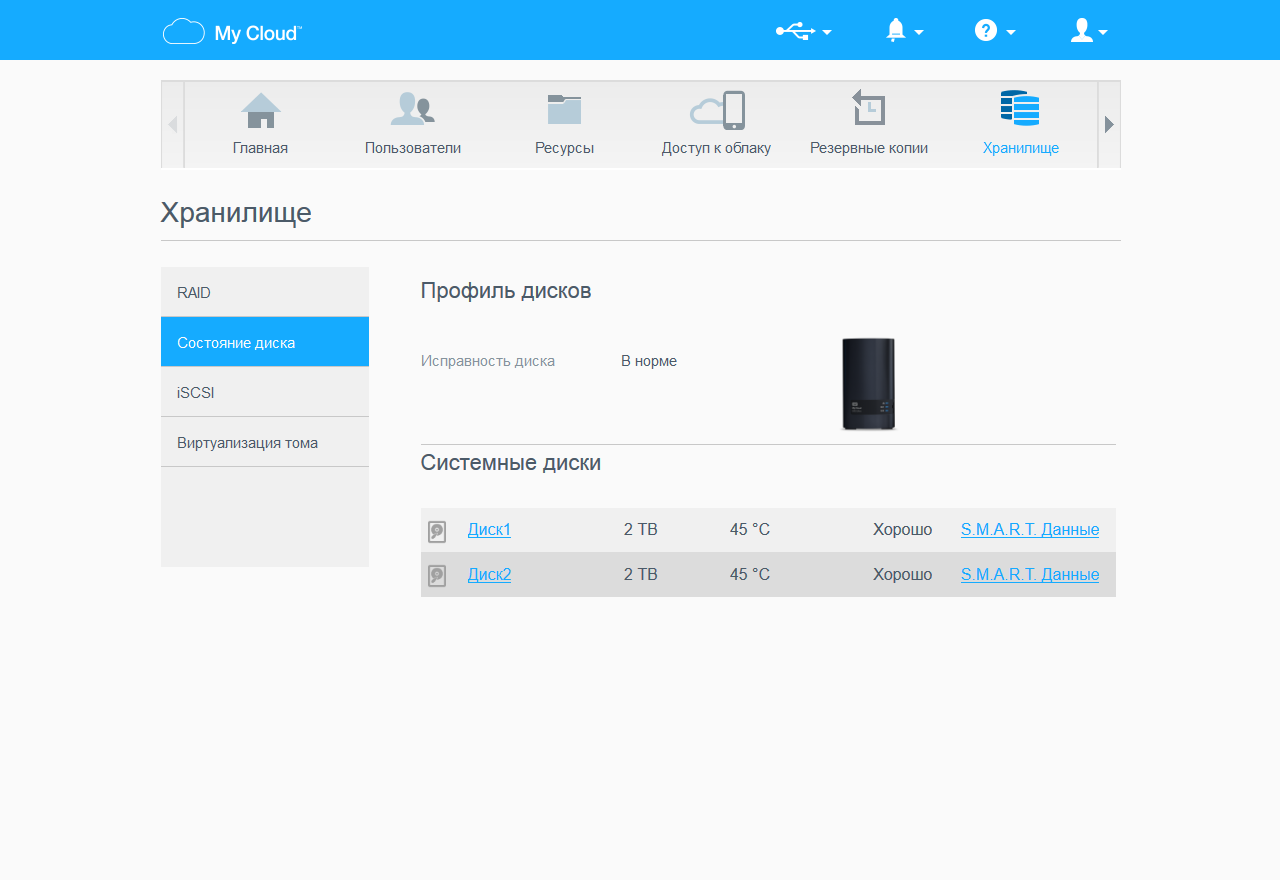 Продукт поддерживает несколько конфигураций дисковых массивов — два отдельных диска, RAID0, RAID1 и JBOD. Из возможностей миграции без потери данных есть только переход с одного диска на зеркало. В случае работы с RAID1 поддерживается операция восстановления после замены отказавшего винчестера. Основная файловая система для пользовательских данных — ext4. В поставляемых на локальный рынок моделях отсутствует поддержка шифрования томов. Отличаются они последней частью артикула — «EEUE» против «EESN» для Европы. В частности, рассматриваемая в этой статье модель имеет артикул WDBSHB0040JCH-EEUE.
