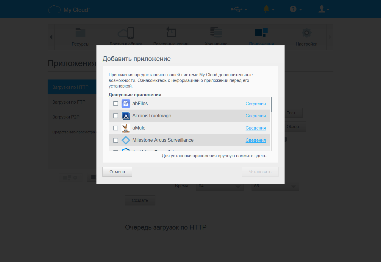 Установленные модули появляются в списке раздела «Приложения» и могут быть в дальнейшем при необходимости удалены. Предусмотрен также вариант установки новых программ из файлов, загруженных из интернет. Ну а наличие доступа к консоли встроенной операционной системы позволяет реализовать и более сложные варианты расширения списка решаемых накопителем задач.