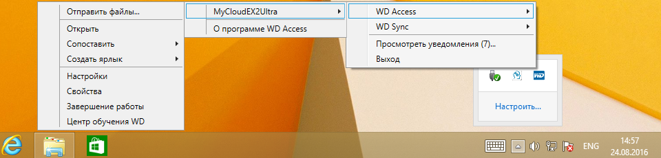 - WD Quick View (для Windows) — утилита для панели уведомлений, позволяет проверить статус устройства, имеет контекстное меню для некоторых распространенных операций, быстрый доступ к просмотру уведомлений, доступ к Web-интерфейсу накопителя;