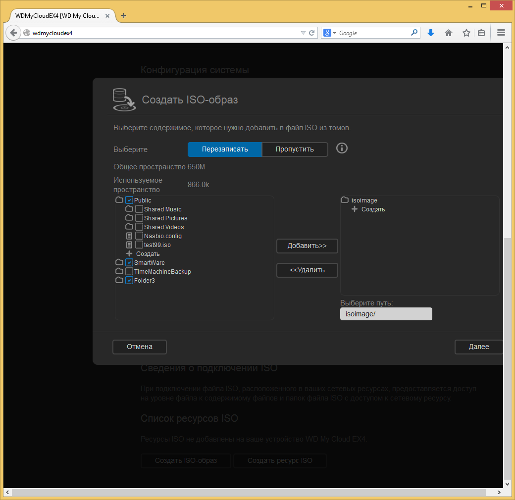 Дополнительно данная модель может монтировать ISO-образы оптических дисков в виде общих папок для удобного доступа по сети. Кроме того, можно и создавать эти образы прямо из веб-интерфейса, выбирая требуемые файлы и папки.