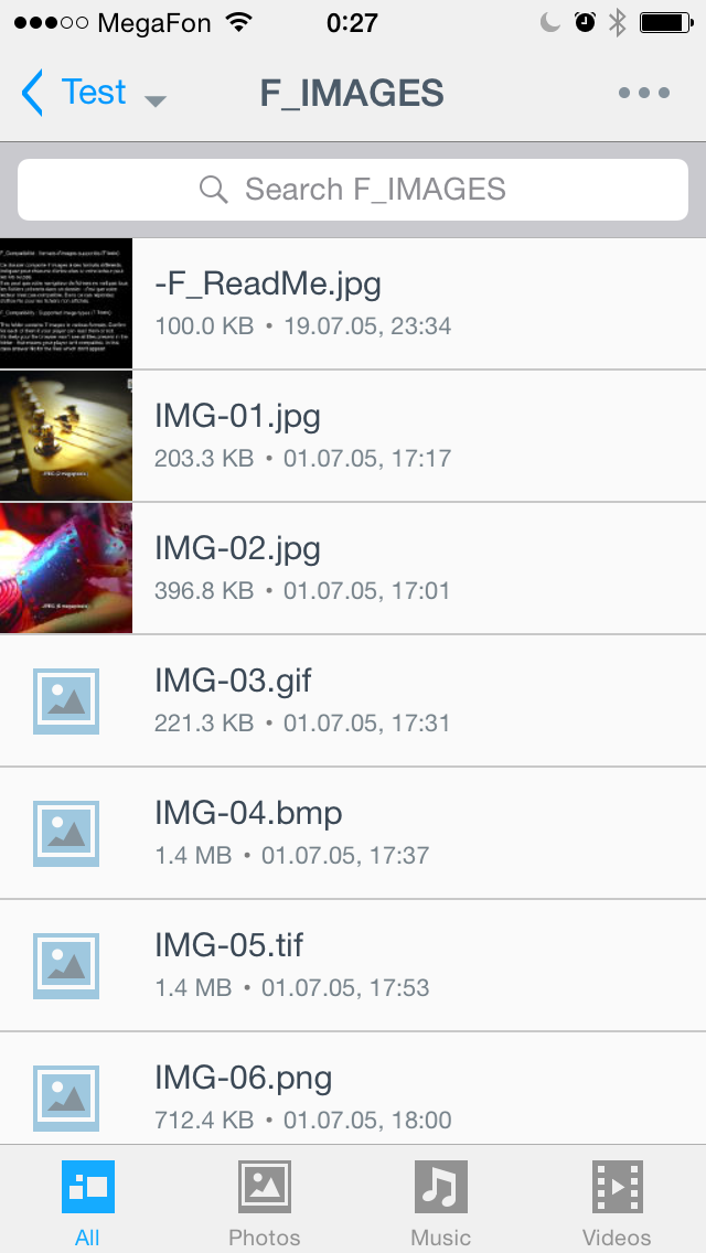 Утилита имеет средства для просмотра изображений, прослушивания музыки и просмотра видео с накопителя в потоковом режиме. Версия для iOS имеет вполне ожидаемые ограничения по форматам, в частности для видео необходимо использовать штатные для этой операционной системы форматы MP4, M4V или MOV, а для музыки — MP3 и M4A. В случае Android, видео плеер используется только внешний, при условии, что он зарегистрирован в операционной системе для открытия данного формата. С некоторыми типами музыкальных файлов работает встроенный в утилиту плеер, а для других может быть вызвана внешняя программа. С фотографиями особых проблем нет, поддерживаются все популярные форматы.