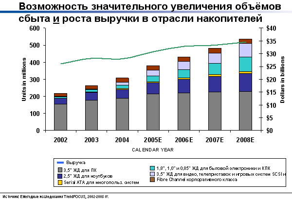 Отметим, что общее количество проданных в 2005 году дисков в мире — 378 миллионов штук, хотя в 2004 году было лишь 305 млн. То есть годовой рост рынка накопителей — около 24%!