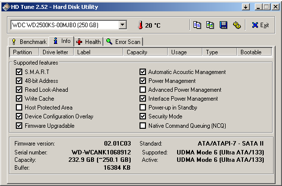 Проверка статуса NCQ в тестируемых дисках утилитой HD Tune 2.52 показала, что флаг NCQ отключен во всех изученных моделях WD2500JS и WD2500KS.
