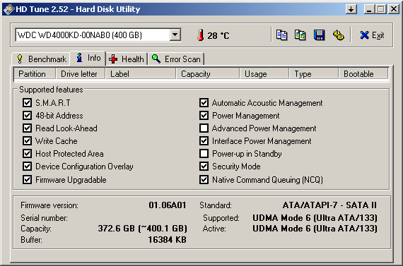 Еще одно сомнение может поджидать пользователя WD4000KD, когда он попытается определить тип интерфейса, которым этот диск оснащен. Некоторые продавцы в прайс-листах, а также некоторые диагностические утилиты (см., например, предыдущий скриншот, причем, в отличие от такого же скриншота для WD4000YR!) информируют о поддержке Serial ATA II, хотя и производитель в спецификациях, и драйверы контроллеров SATA II, к которым этот диск подключен, четко докладывают о поддержке накопителем лишь первого поколения скорости Serial ATA в 1,5 Гбит/с.