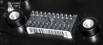 А прижимные игольчатые электроконтакты используются как для сигналов с головок и управления актуатором, так и для шпиндельного мотора (на фото — внизу). Оба они надежно прижимаются к плате при помощи близко расположенных винтовых соединений.