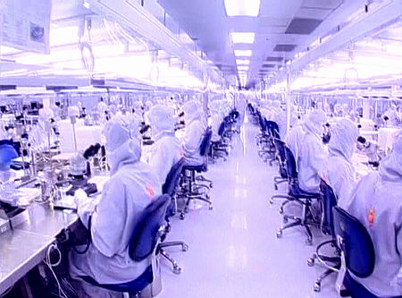 Те же огромные цеха и «чистые комнаты», люди в спецкостюмах («скафандрах»),