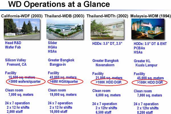 Обе фабрики WD в Таиланде насчитывают вместе уже около 20 000 работников и более 500 инженеров,