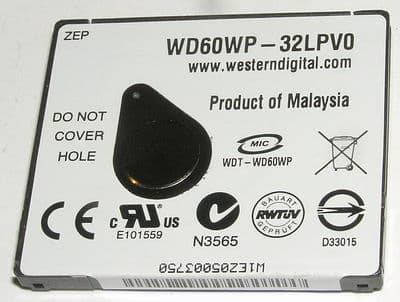 Внутри — винчестер WD60WP-32LPV0 с разъемом CF+ Type II