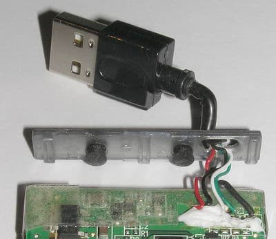 После чего нужно развинтить внутреннюю часть поворотного разъема USB, снять ее и вытащить все внутренности с остатками разъема с противоположной (разъему USB) стороны.