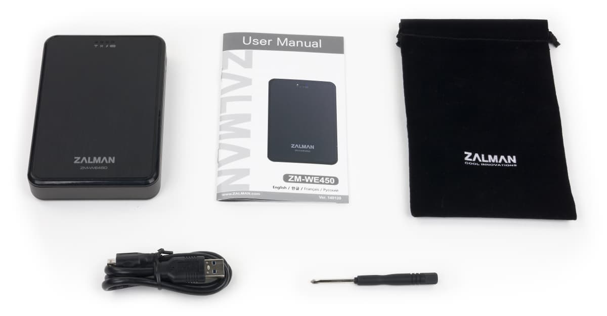 В отличие от них, Zalman ZM-WE450 является «полуфабрикатом» — пользователю необходимо будет самостоятельно установить в устройство жесткий диск или SSD формата 2,5″. Подобный подход имеет как плюсы (можно гибко выбрать конфигурацию), так и минусы (требуется отдельно приобретать диск). Посмотрим, насколько хорошо это устройство справляется со своими задачами.