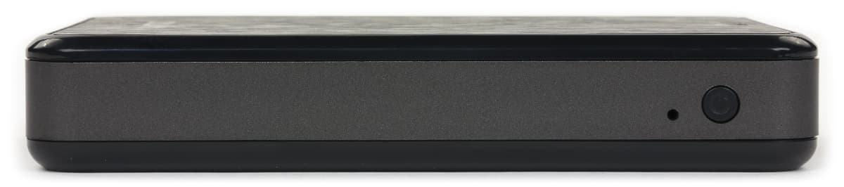 На одном из боковых торцов находится выключатель питания, который также может быть использован для быстрой проверки уровня заряда батареи в выключенном состоянии. Рядом с ним — отверстие сброса настроек.