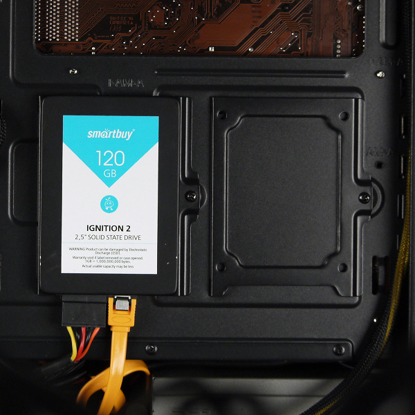 Всего тут можно установить шесть накопителей формата 2,5″ или 2×3,5″ и 4×2,5″. Этого вполне достаточно для типичного домашнего компьютера невысокой ценовой категории.