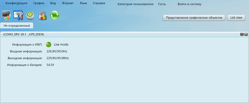 После клика по иконке открывается окно браузера с соответствующим интерфейсом, где можно выбрать и русский язык. Сначала оно почти пустое, надо соединить ИБП и компьютер кабелем USB или RS-232.