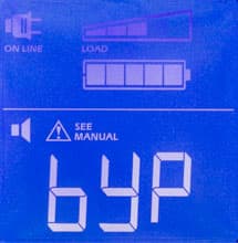 Если еще немного увеличить нагрузку, всего на 60-100 Вт, то источник через несколько секунд перейдет в режим Bypass (на экране появится соответствующий символ) и вернется к двойному преобразованию лишь после снижения нагрузки.
