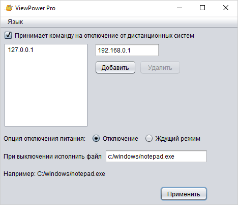 У программы есть много функций, предназначенных для работы с целым набором источников бесперебойного питания. Соответственно и компьютеров, которые нужно вовремя отключать, может быть много, и большинство из них не будут соединены с ИБП интерфейсными кабелями. Для них на диске имеется утилита Shutdown Wizard, которая устанавливается отдельно, включается в автозагрузку и позволяет принимать управляющие сигналы от сетевого источника с определенным IP-адресом.