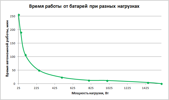| Нагрузка | Время работы от батарей | ||
