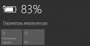 А в области уведомлений панели задач — иконка батареи, после наведения на нее курсора раскрывается окно с дополнительными параметрами.