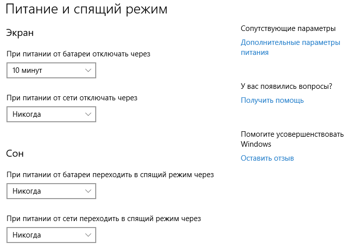 Соответственно и в настройках схем управления электропитанием появляются две строчки для значений основных настроек — «От батареи» и «От сети»: