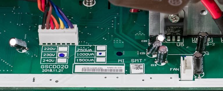 Еще один момент остался под вопросом: спецификация упоминает три возможных выходных напряжения — 220, 230 и 240 вольт, и остается непонятным, каким образом осуществляется выбор. Можно только предположить, что эта установка заводская, в пользу этого говорит информация на этикетке, приклеенной к упаковке: у нашего экземпляра там было обозначено «230V», а пользователь/владелец оперативно изменить ее не может.