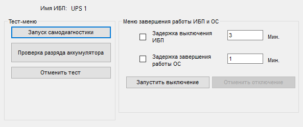 Возможности, мягко говоря, небогатые: только пара тестов и принудительное выключение с установкой задержек.