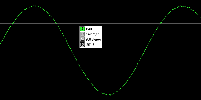 Форма выходного сигнала при работе от батарей практически не зависит ни от величины нагрузки, ни от ее типа. При заданном номинале 230 В отклонение не превышало 0,5 В, а суммарный коэффициент гармонических составляющих — 0,9%.