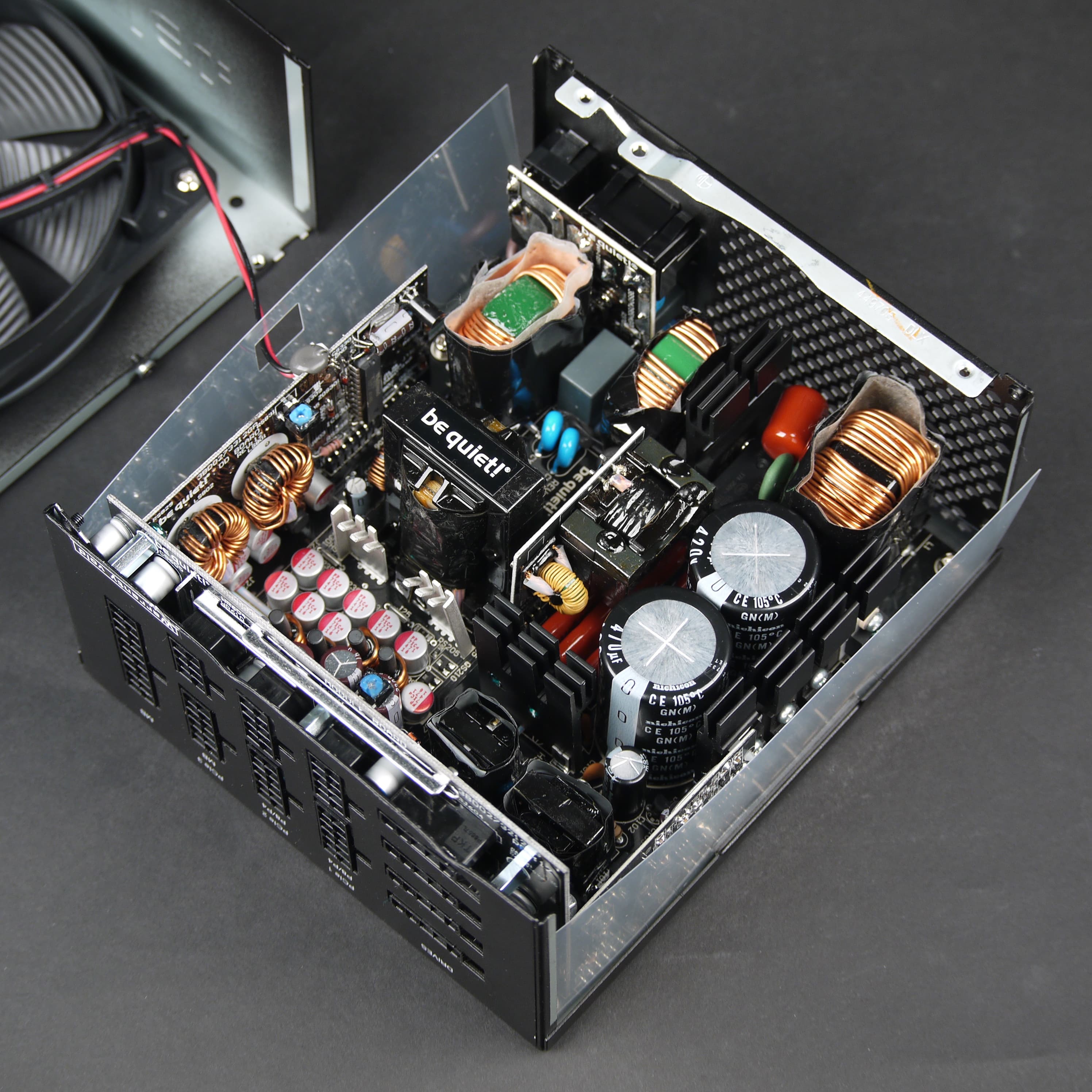 В блоке питания установлены конденсаторы преимущественно японского происхождения: Nichicon (высоковольтные), Nippon Chemi-Con и Rubycon, а также большое количество полимерных конденсаторов.