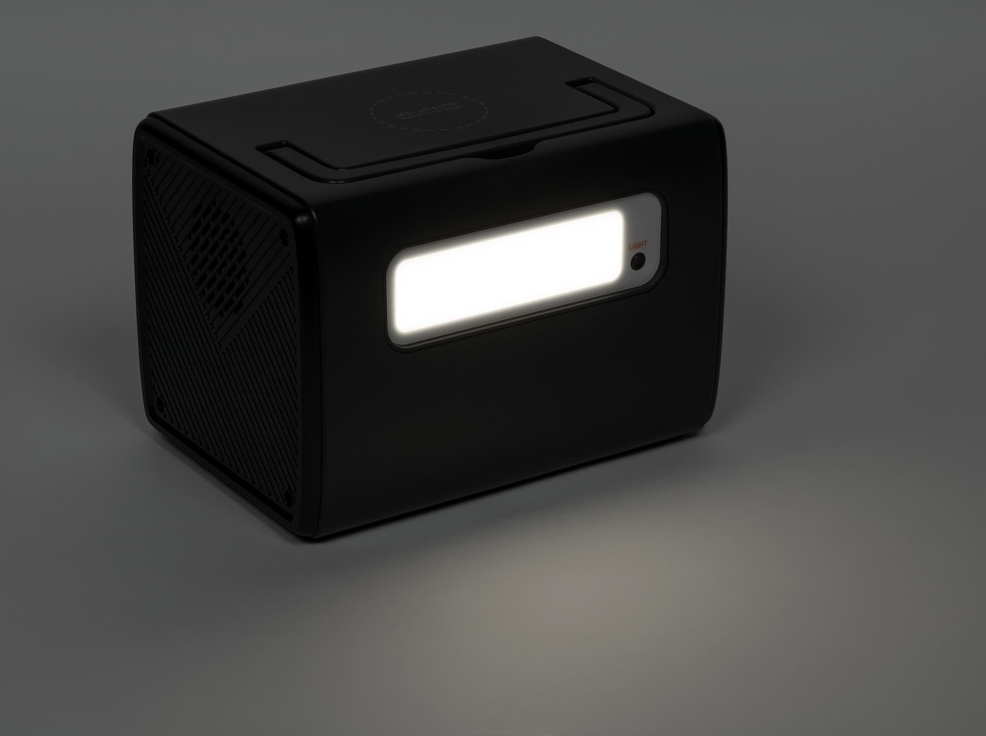 На противоположной стенке расположен встроенный светильник с управляющей кнопкой. У него три режима: постоянное свечение с двумя уровнями яркости (на меньшем ЖК-экран отображает выходную мощность 2-3 ватта, на большем 4-5 ватт), а также подача сигнала тревоги — что-то вроде SOS.
