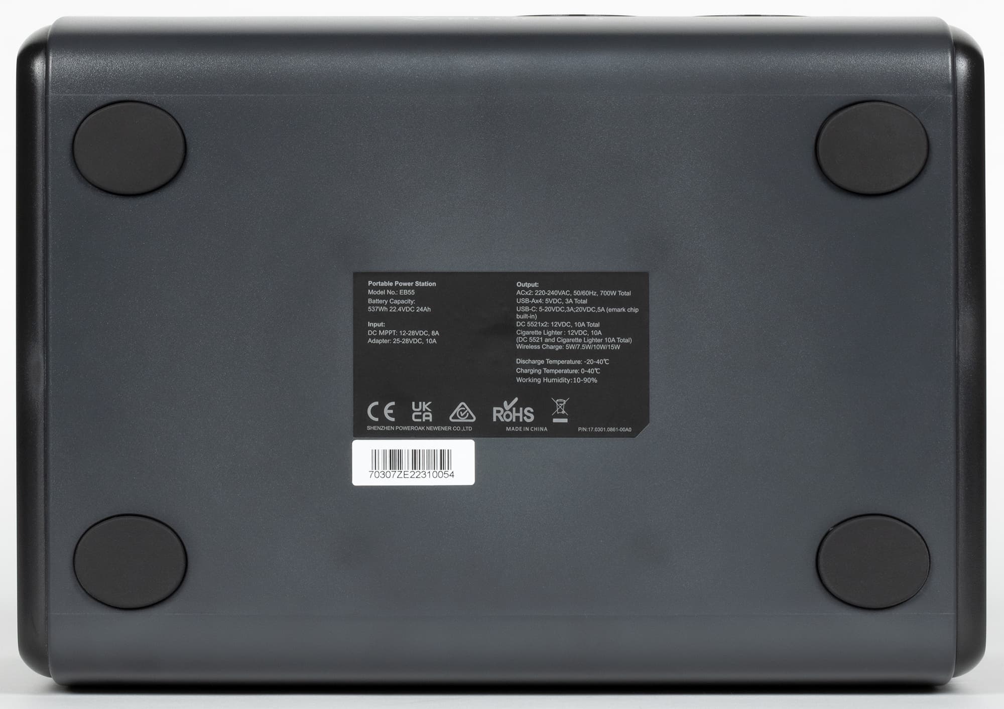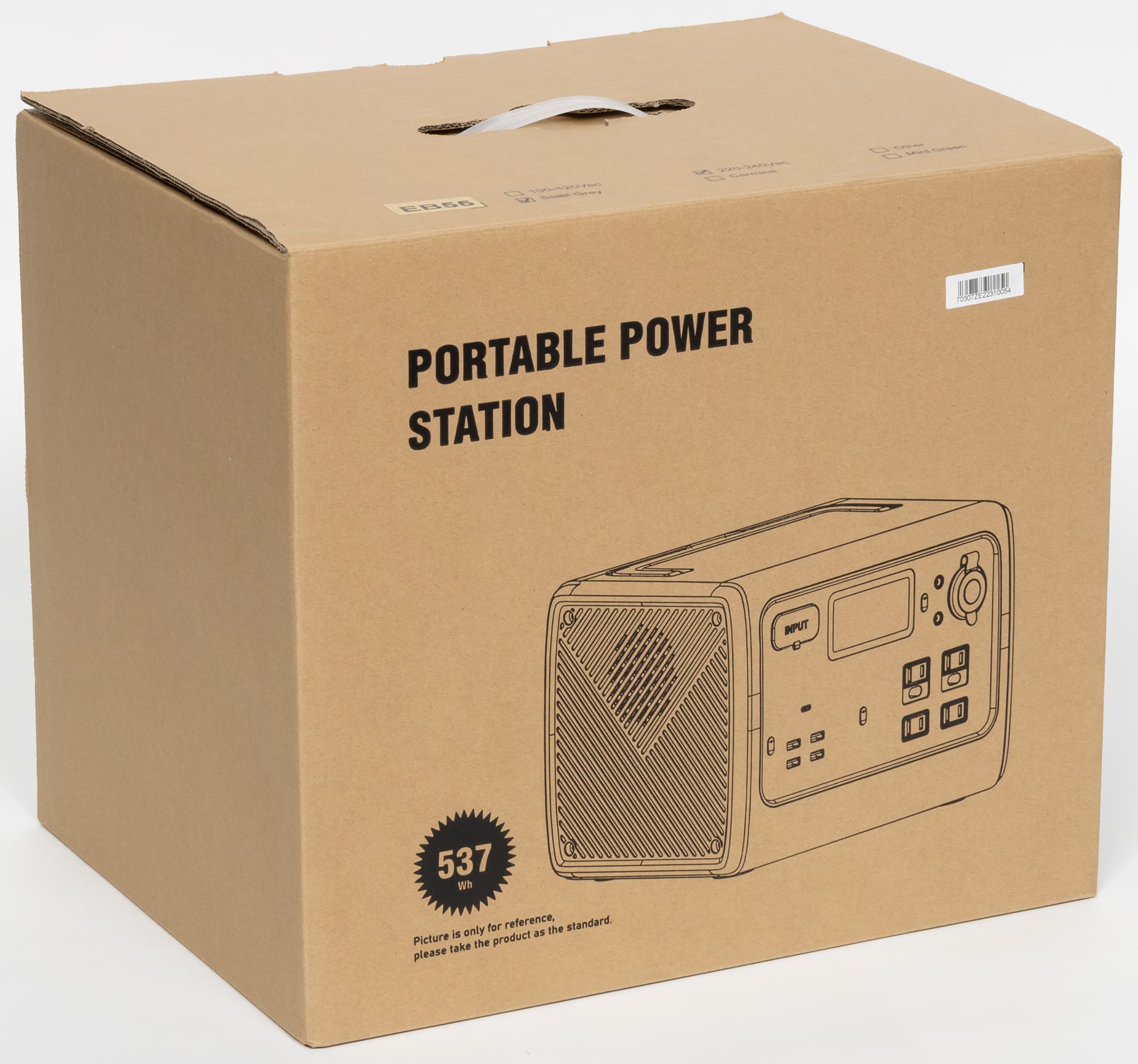 Внешне станция Bluetti EB55 похожа на аккуратный сундучок со складывающейся ручкой наверху (при весе в 7,5 кг переносить одной рукой вполне сможет женщина или подросток). Корпус сделан из прочного пластика двух цветов: черного по бокам и темно-серого в остальной части, все поверхности матовые.