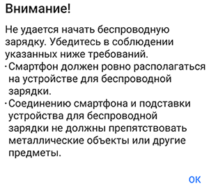 Сначала смартфон пришлось немножко покрутить на беспроводном «пятачке», иначе лишь следовали сообщения о невозможности зарядки, но потом нужное положение было найдено.