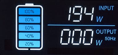 Правда, разработчики Bluetti приняли меры, которые не позволят совсем уж разрядить батарею автомобиля: если напряжение в бортсети ниже 12,2-12,3 В, то заряд не пойдет — потребляемый ток и отображаемая на ЖК-экране входная мощность будут нулевыми.