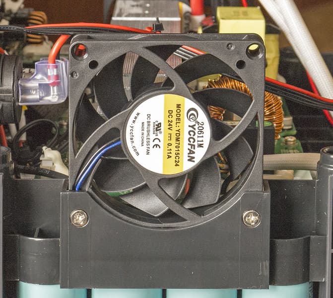 Вентиляторы обслуживают только плату, а ведь нагревается и батарея, порой до перегрева с появлением индикации о соответствующей ошибке (это мы увидим ниже), и тогда приходится просто ждать, причем долго. За температурой батареи следит термодатчик.