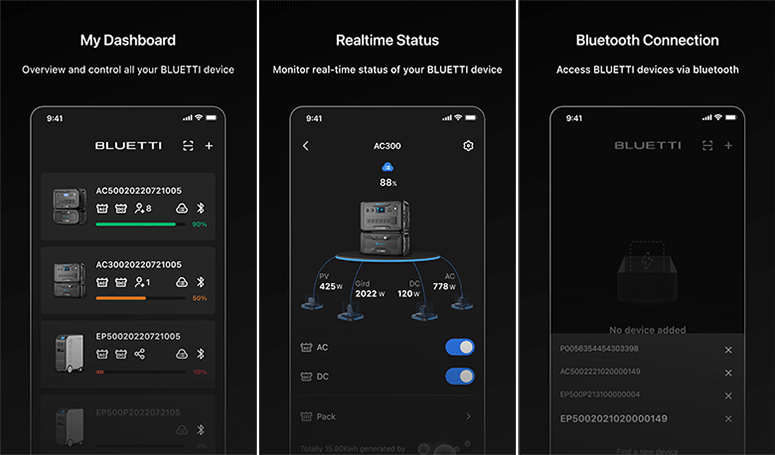 Модели Bluetti EB55 и EB70 не имеют адаптеров Bluetooth, а потому не могут работать с этим приложением. Из перечисленных в начале обзора такая функция есть только у Bluetti AC200Max.