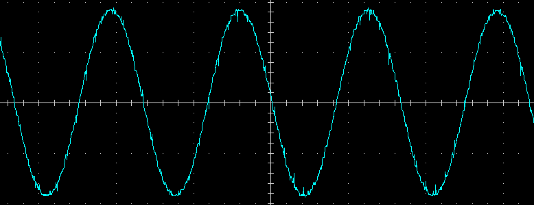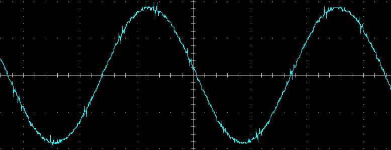 Надо еще уточнить форму выходного напряжения инвертора — заявлен чистый синус, а что на деле? Вот осциллограммы для выходной частоты 50 Гц с активной нагрузкой 100 Вт при разной развертке по горизонтали: